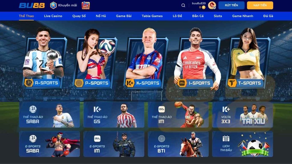 Khi bước vào sảnh thể thao BU88, người chơi sẽ được đắm chìm trong không khí cuồng nhiệt của hàng nghìn trận đấu mỗi ngày. Dù là bóng đá, bóng rổ, cầu lông, tennis, đua xe, eSports hay thể thao ảo, tất cả đều được cập nhật liên tục theo thời gian thực. Ngoài ra, giao diện cá cược mượt mà, số liệu thống kê chi tiết và tính năng xem trực tiếp giúp anh em dễ dàng theo dõi, phân tích và điều chỉnh chiến thuật hợp lý.